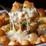 Creamy Alfredo sauce mingles with tender chicken, sweet peas, and golden tater tots, all topped with melty mozzarella. It’s the kind of comforting meal that fills your kitchen with warmth and your table with smiles — a blend of family-favorite flavors and nostalgic textures that never disappoint.
