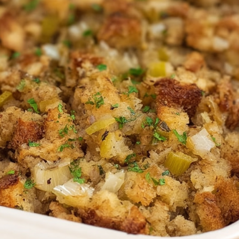Leftover stuffing keeps well in the fridge for up to 4 days. For longer storage, freeze it in airtight containers for up to 2 months. Reheat in the oven with a drizzle of broth to restore that soft, just-baked texture.