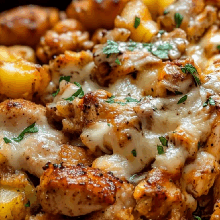 This skillet dinner is pure comfort — tender chicken and crispy potatoes tossed in buttery garlic and Parmesan goodness. One pan, full flavor, zero stress.