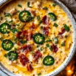Q3: Can I make it in a slow cooker? A3: Definitely. Sauté the bacon, onions, and jalapeños first, then transfer everything (except cheese and cream) into a slow cooker. Cook on low for 5–6 hours, add cheeses at the end, and stir until creamy.