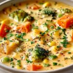 When the weather cools down and cozy cravings hit, there’s nothing more satisfying than a warm bowl of Veggie Pot Pie Soup. It captures everything you love about a traditional pot pie — creamy broth, tender vegetables, and rich, savory flavor — without the effort of rolling out a crust. With every spoonful, you’ll taste comfort, nostalgia, and homestyle goodness. This soup brings together simple ingredients in a way that feels special, perfect for family dinners or lazy Sundays. It’s creamy, hearty, and deeply satisfying — a modern twist that turns a classic comfort food into a bowl of happiness.